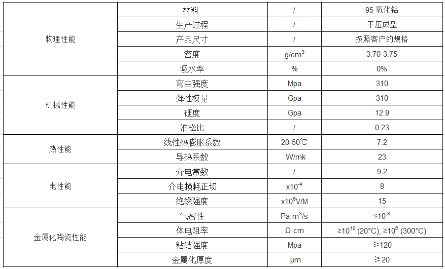 材质:95%氧化铝,加工类型:干法加工, 颜色:白色或根据客户要求定制 。